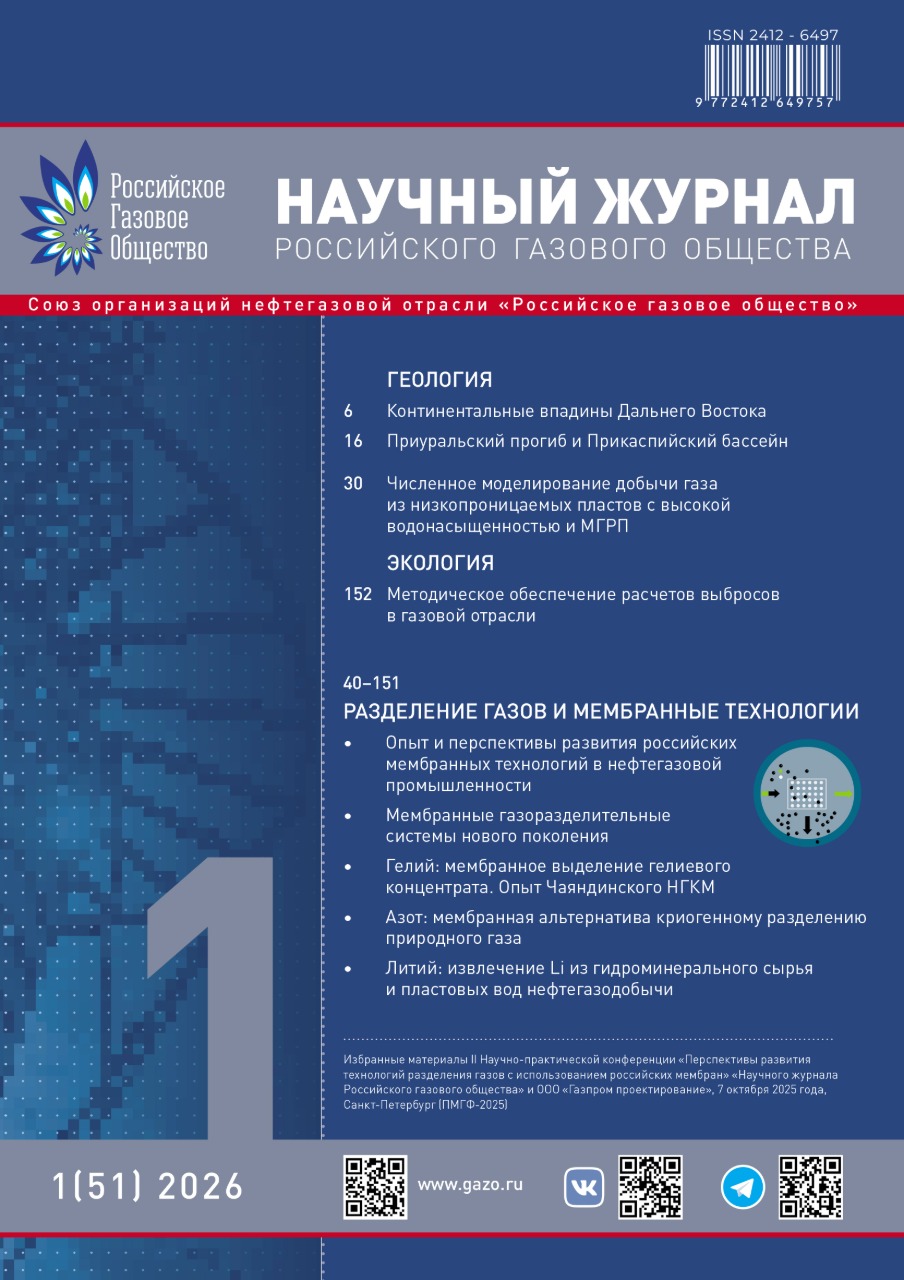 В номере: геология – континентальные впадины Дальнего Востока, Приуральский прогиб и Прикаспийский бассейн; моделирование газодобычи газа из низкопроницаемых пластов; экология – методическое обеспечение расчетов выбросов; разделение газов и российские мембранные технологии, материалы научной конференции РГО на ПМГФ-2025.